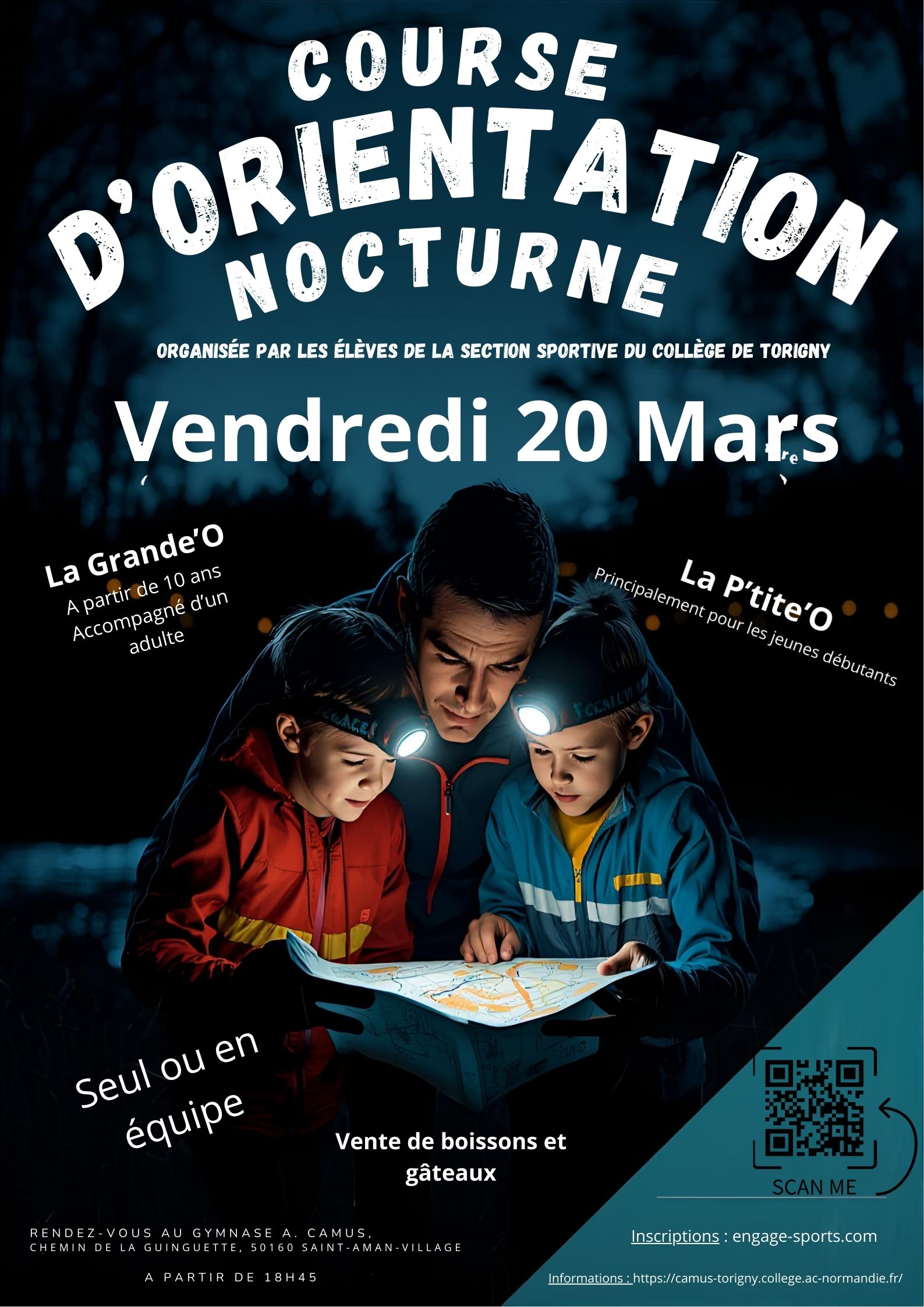 Que vous soyez sportif, amateur d’aventure ou simplement curieux, notre P'tite CO du Collège est faite pour vous ! Seul ou en équipe, découvrez la magie de l’orientation en pleine nuit dans une ambiance conviviale et accessible à tous les niveaux.